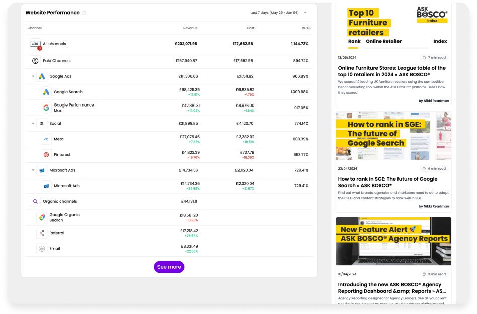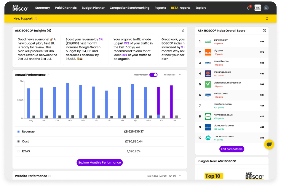 We plan our budgets weekly to enable us to make changes and identify issues. Without ASK BOSCO® it would be almost impossible for us to be able to do this, as if our agency didn’t have the overall visibility over our campaigns and couldn’t offer reports, recommendations, and insights on a weekly basis, it wouldn’t work.