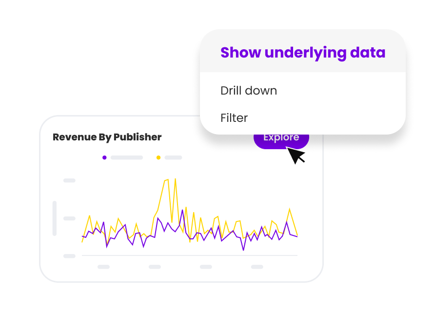 Explore data layers effortlessly and gain detailed insights into affiliate campaign performance with enhanced drill-down and filtering capabilities. Go further with your very own AI assistant, providing commentary on your performance within the report.