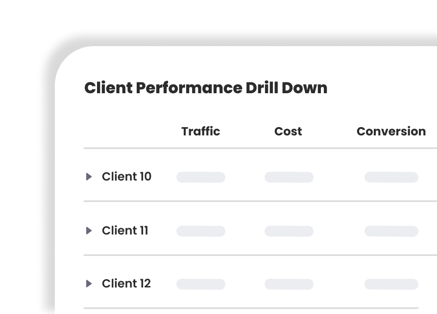 Get a complete picture of agency-wide performance, with cumulative metrics across all clients.