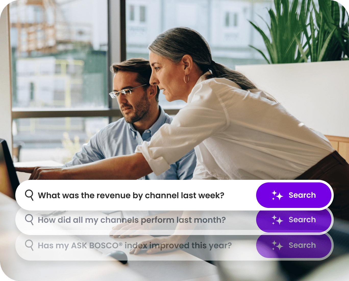 Work smarter, not harder. Let ASK BOSCO® do the heavy lifting with unified, easy-to- use ecommerce reporting and forecasting. Freeing up your time spent on higher value work.